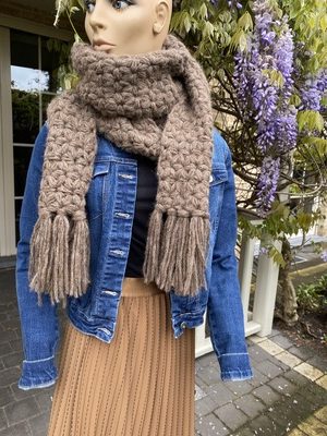 Be the first to review “Zeer dikke lange gehaakte wintersjaal met franjes”